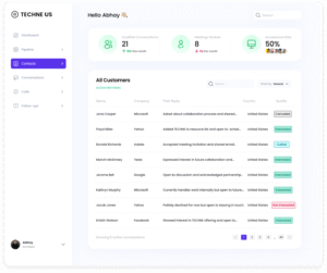 With the team’s time at a premium, a functional pipeline was only useful if it required minimal effort to maintain. A Notion-based CRM was configured to give TECHNE a single view of every active contact: who to call, a briefing on each conversation, and context on what the prospect cared about. Abhay could walk into every call informed and focused—without chasing notes across emails and messages.